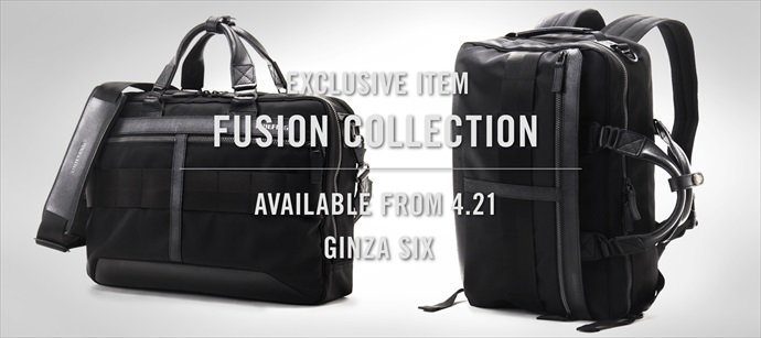 完全限定の「 FUSION COLLECTION 」はウォータープルーフレザーと、強度に優れる高密度ナイロンを組み合わせたワンランク上のモデルとなります。